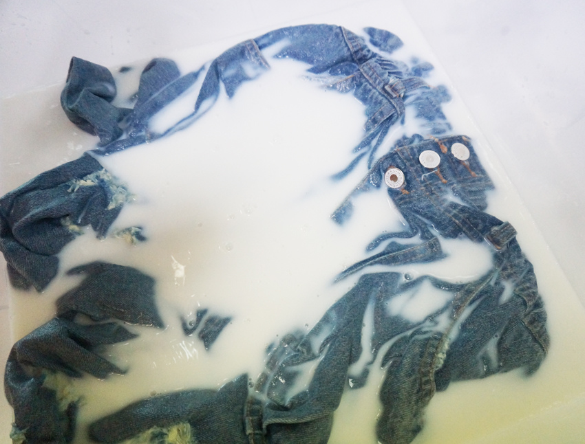再充份浸泡,讓整件褲子都吸飽溶液。