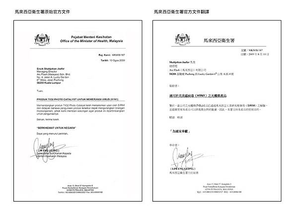 ▲2009年ARC-FLASH光觸媒獲馬來西亞衛生署及教育部官方認可,用於防治H1N1流感病毒疫情。